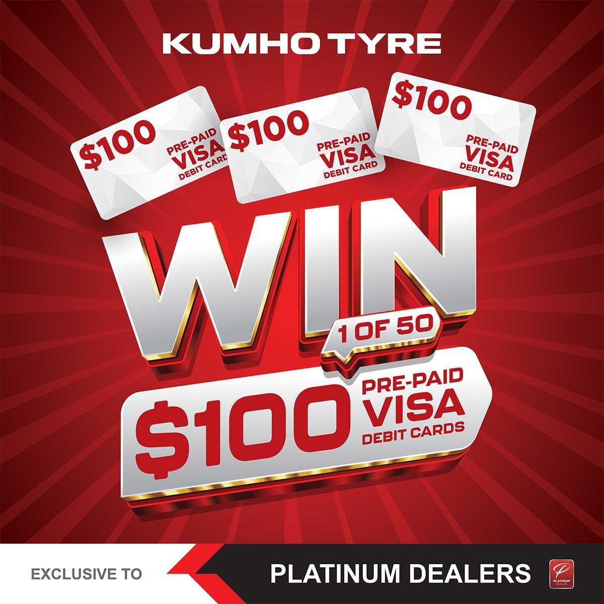 If your tyres are due for an upgrade, there's no better time to do than right before the holidays with Transit Tyres & Mechanical! Purchase 2 or more Kumho tyres and you’ll go into the draw to win one of 50 x $100 prepaid Visa gift cards. That’s extra spending money, just in time for gifts, getaways, or treating yourself! How to Enter: Visit your local Kumho Platinum Dealer and purchase 2 or more Kumho brand tyres Hang on to your receipt Register your details online here by December 12th, and you’ll be in the running to win! 50 lucky winners will be drawn on the 15th of December, just in time for the holidays! Why Choose Kumho? With a reputation for durability, superior traction, and smooth performance, Kumho Tyre keeps you safe and comfortable on the road. Explore a wide range of tyres including SUV , EV , passenger and off-road vehicles and more, and find your best fit with expert dealers Australia wide.